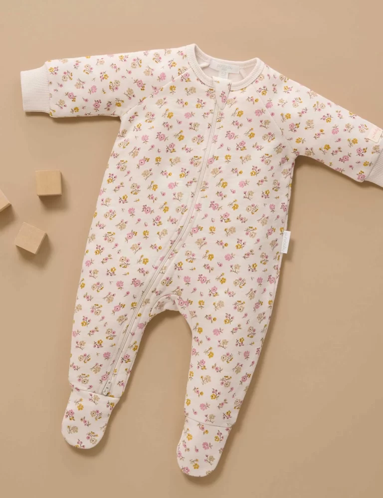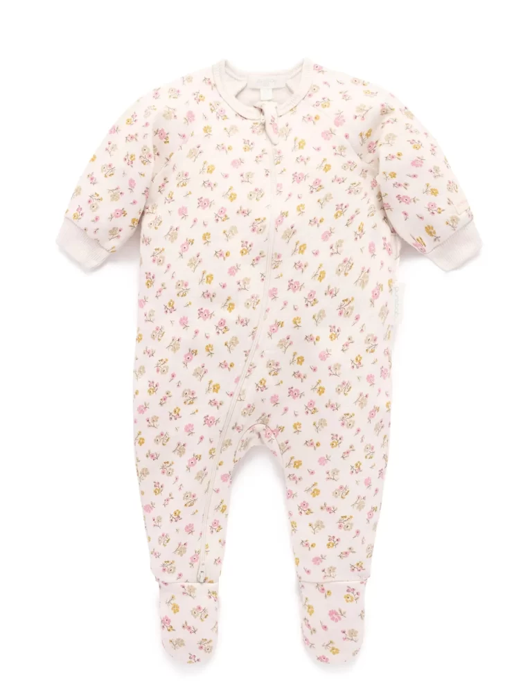Fleecy Zip Growsuit – Peach Floral