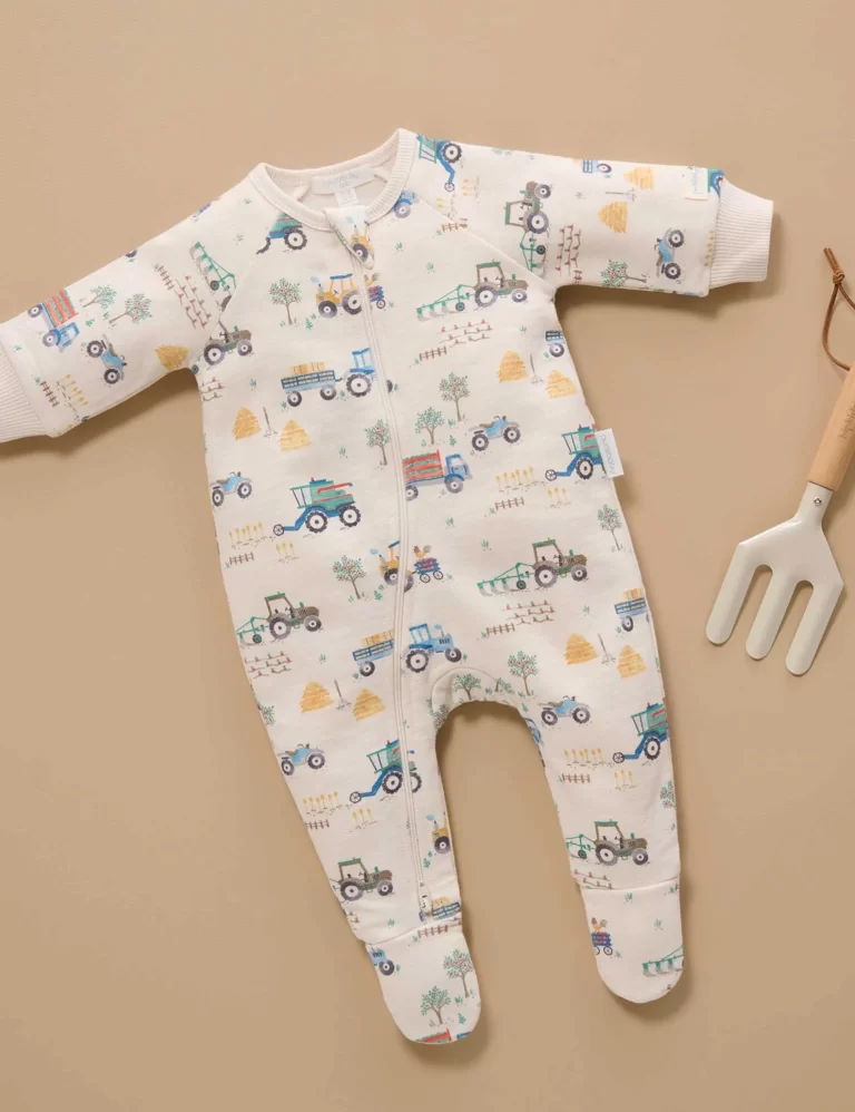 Fleecy Zip Growsuit – Farm Vehicle