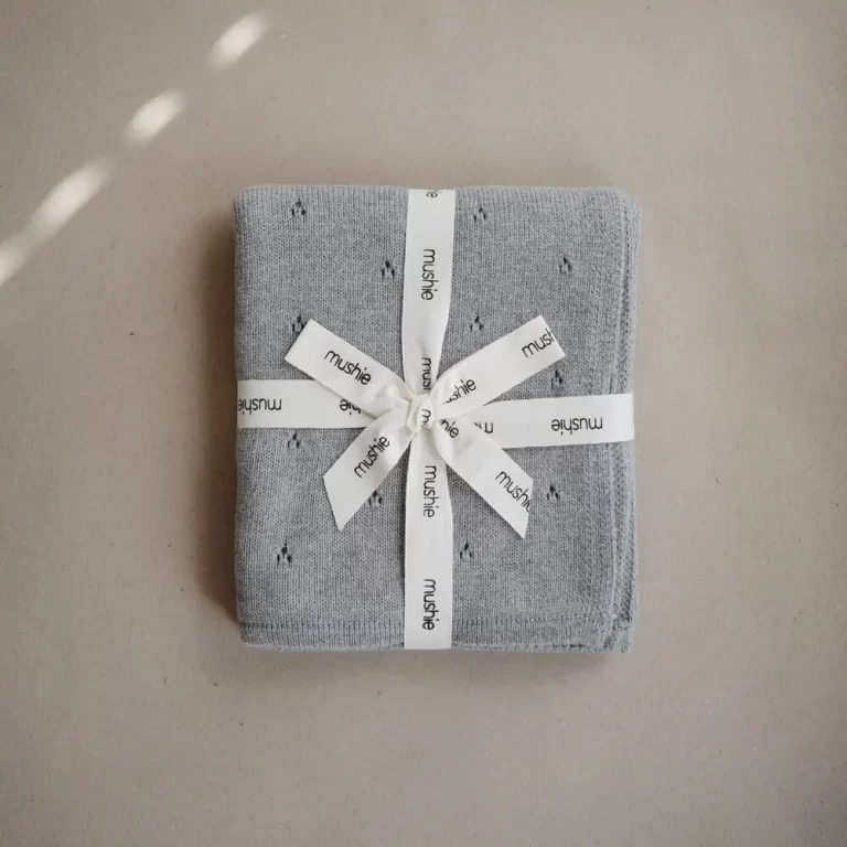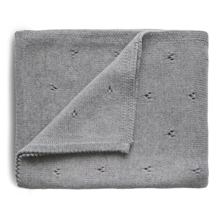 Baby blanket in knitted pointelle – Mixed grey