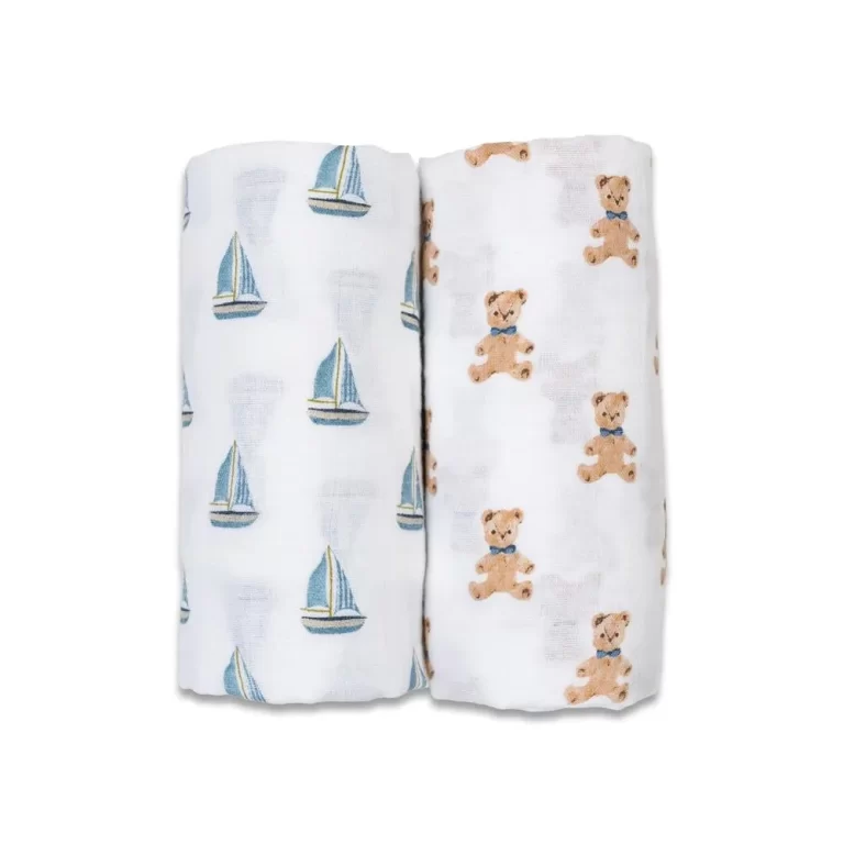 Blankets (2) cotton muslin – Bear + sailboat