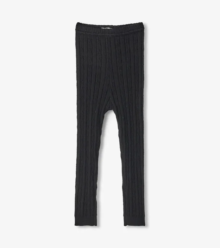 Baby Girls Black Cable Knit Leggings