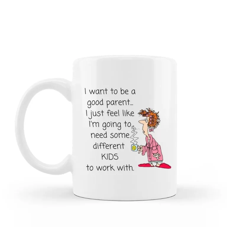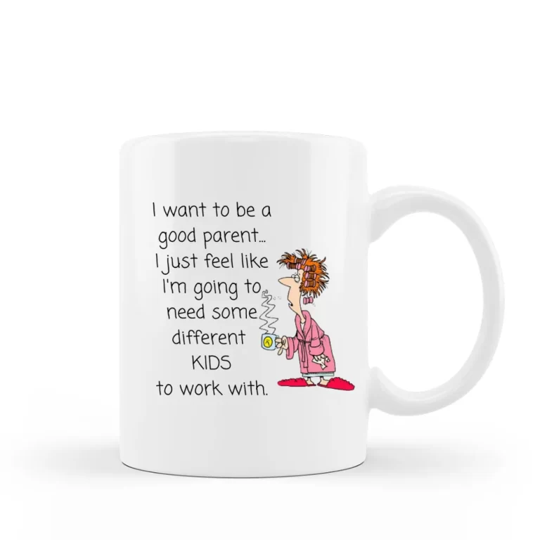 This funny 15 oz ceramic coffee mug says “I want to be a good parent…I just feel like I’m going