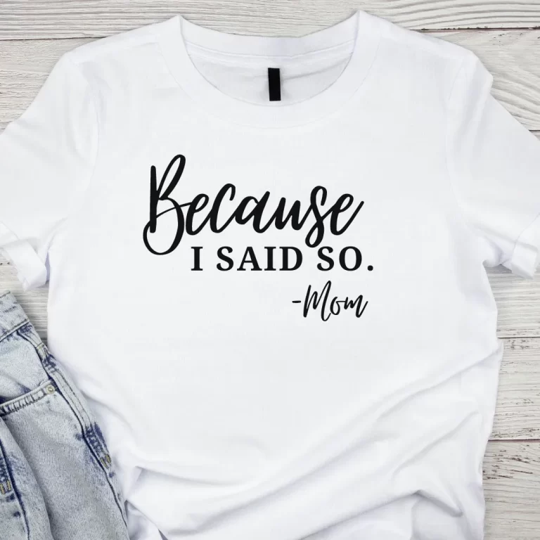 Embrace the classic mom mantra with our “Because, I Said So. – Mom” cotton t-shirt. This comfortable and stylish tee