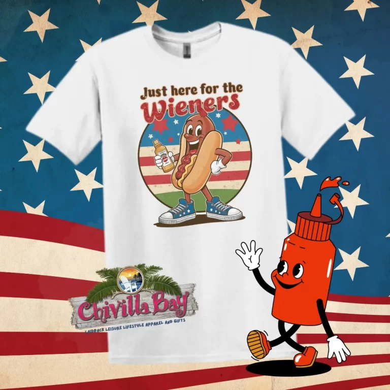 Unleash your patriotic spirit (and your sense of humor) with our “I’m Just Here for the Wieners” T-shirt! Crafted from