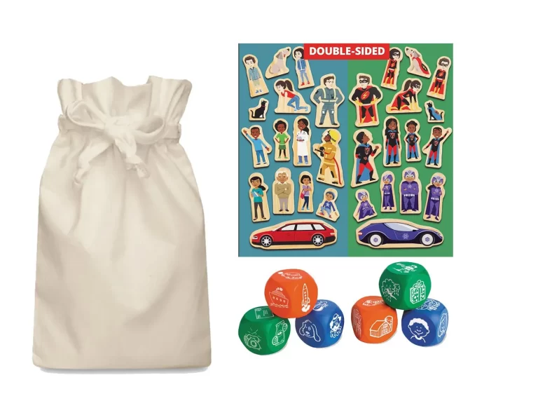 Story Starter Picture Cubes and Superhero Character Story Sack