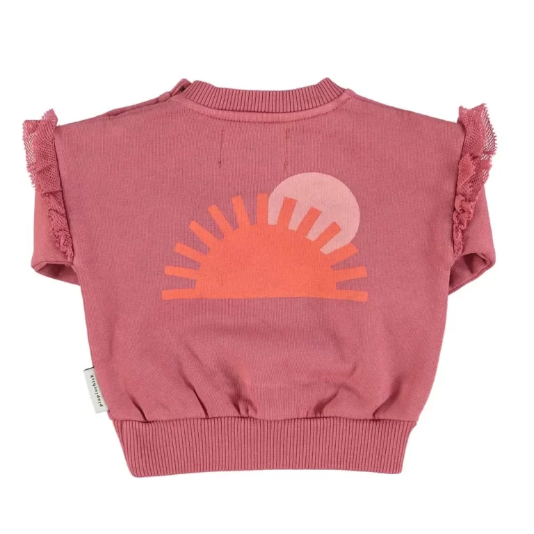 Baby Sweatshirt w/ Frills on Shoulders – Pomegranate with “More Amore” Print