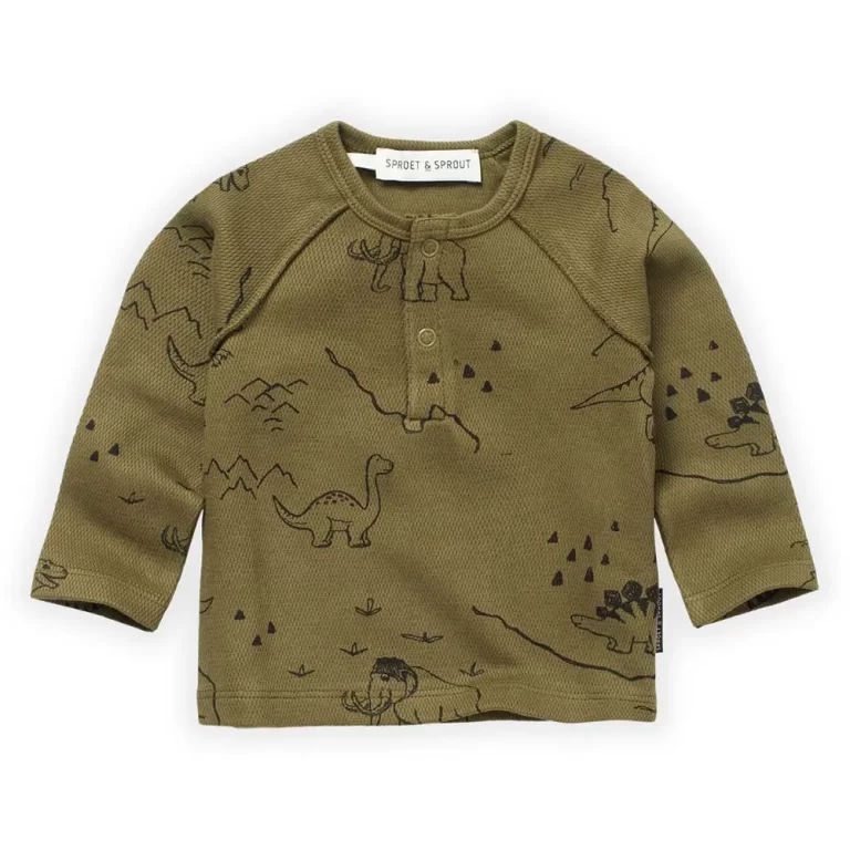 Dino Print Grandad Tee Shirt – Khaki
