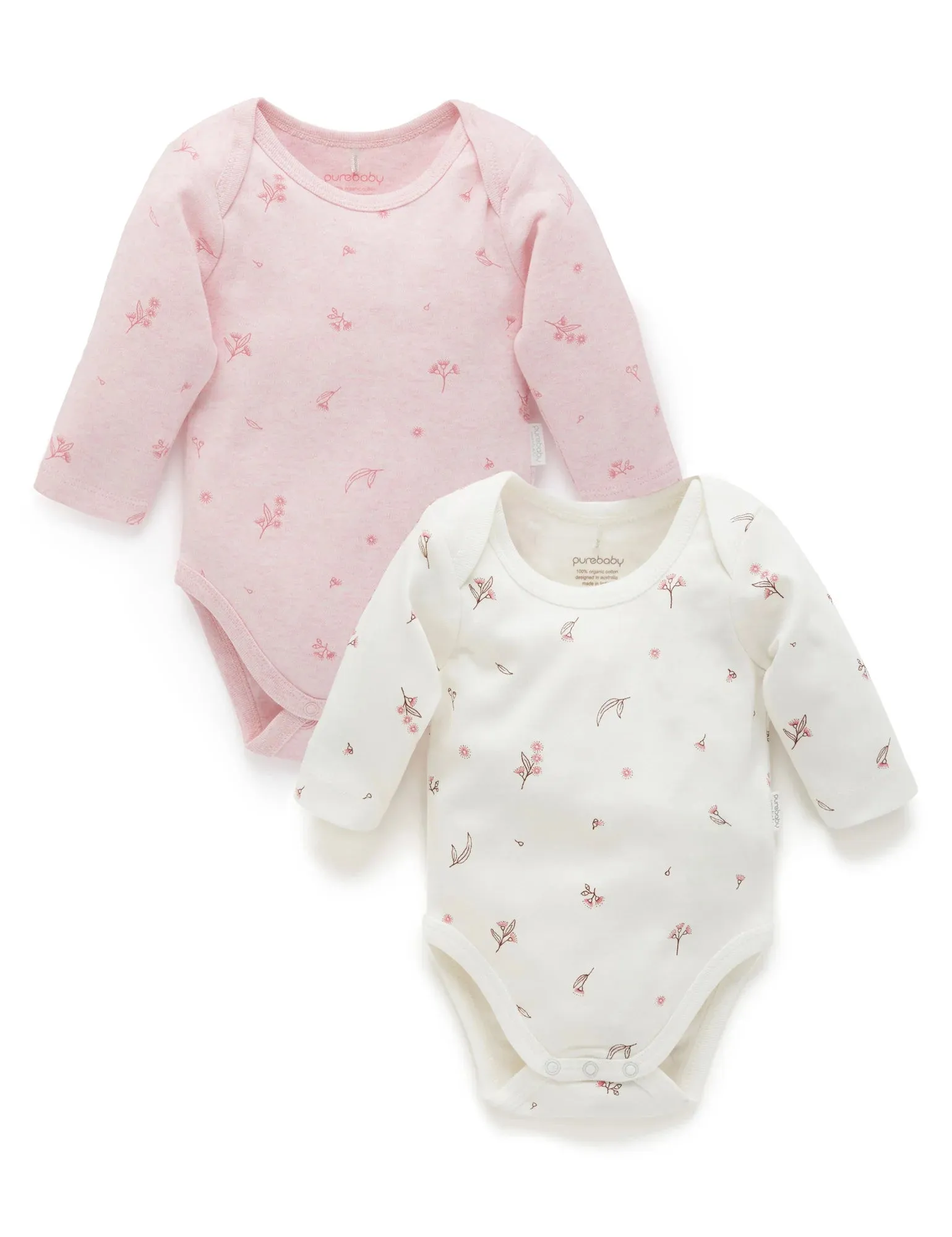 2 Pack Easy Neck Long Sleeve Bodysuit – Pale Pink Blossom
