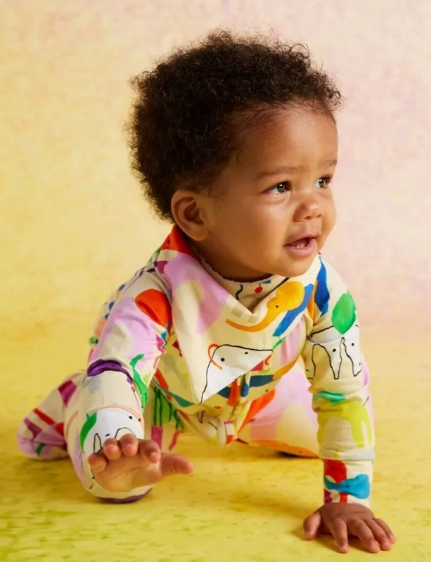 Meet the happiest herd in town! This colourful elephant-print bib brings a parade of personality to mealtime, with whimsical shapes