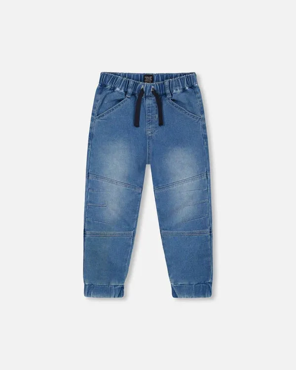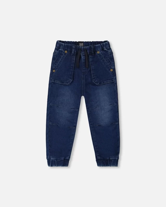 French Terry Denim Jogger Pant Dark Denim Blue