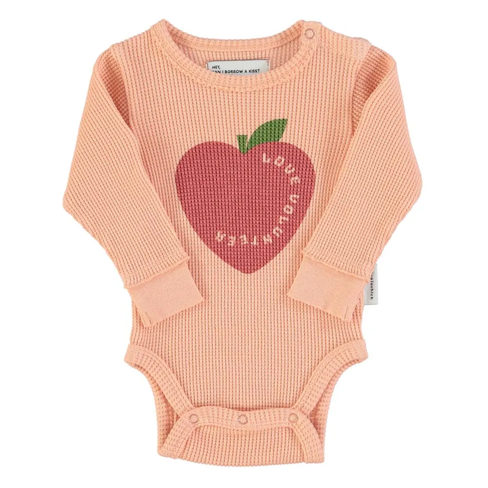 Baby body in organic cotton waffle and snap fasteners on the side of the neck and between the legs.