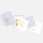 Cards: 108 x 140mm / 4.25 x 5.5 inches, Box: 120 x 153 x 20mm / 4.7 x 6 x 0.78 inches. Premium 350gsm FSC-certified white uncoated cardstock. Packaged in a beautiful keepsake rigid box with gold foil accents and matte finish.