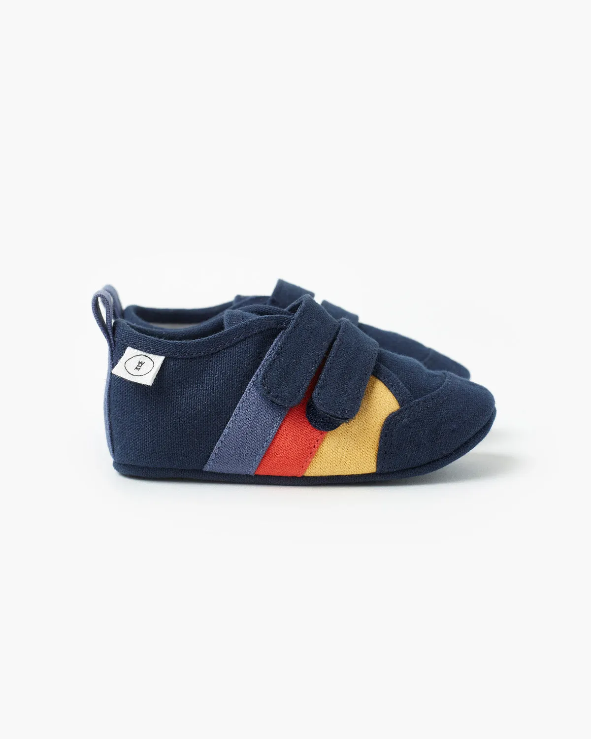 The Nate Baby Sneaker is a gorgeous soft soled shoe with non-slip grip for those tiny feet starting to walk! Featuring hook & eye closure for easy on/off wear, the retro stripes will add loads of fun to any baby outfit!