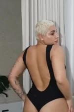 The backless thong bodysuit is perfect for layering; pair it with lounge pants at home or with jeans for a night out. The neckline sits high at the collar bone and offers a low curved back. Made with our stretch bamboo jersey to ensure a comfortable fit on every body type.