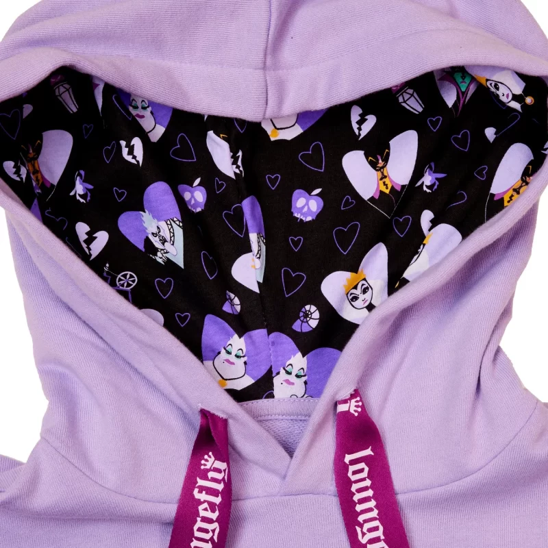 Details: The Loungefly Unisex Hoodie is made of French Terry cotton with Jersey Lined Hood  (60% cotton, 40% polyester). Extra-large lanyard-style
