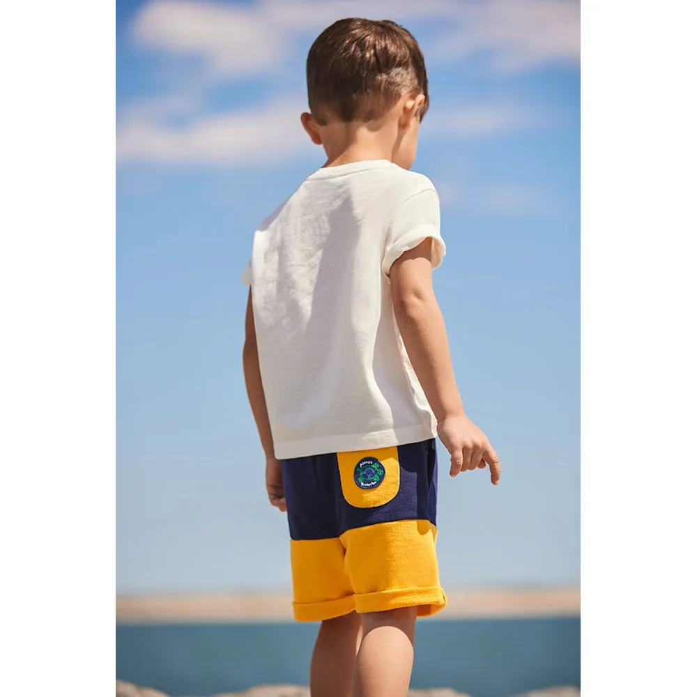 The stylish dual color shorts spun from upcycled organic cotton and recycled polyester are crafted with adventure in mind. Combining playful details and a sophisticated color pairing, these shorts are perfect for outdoor play and relaxation. Made from upcycled cotton