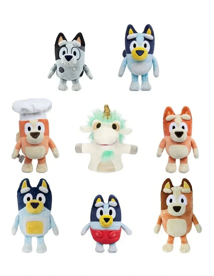 Bluey is a loveable, six-year-old Blue Heeler dog, who loves to turn everyday family life into endless, playful adventures. Bring the fun and imaginative play home with the Bluey Friends Plush! At 20cm tall Bluey and her friends are just the perfect size to cuddle and take anywhere! Made with deluxe fabrics and featuring embroidered details, this super-soft plush doubles as a cuddly toy for showtime or storytime Collect all of Bluey’s plush friends and create your own Bluey adventures.