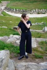 Our bubble top is sophisticated and fun with vintage vibes. Bias chevron in the center, and a small peekaboo give just enough skin. Length to waist, with an elastic band for comfort and ease. High V-neck and winged sleeve make this piece stand out.