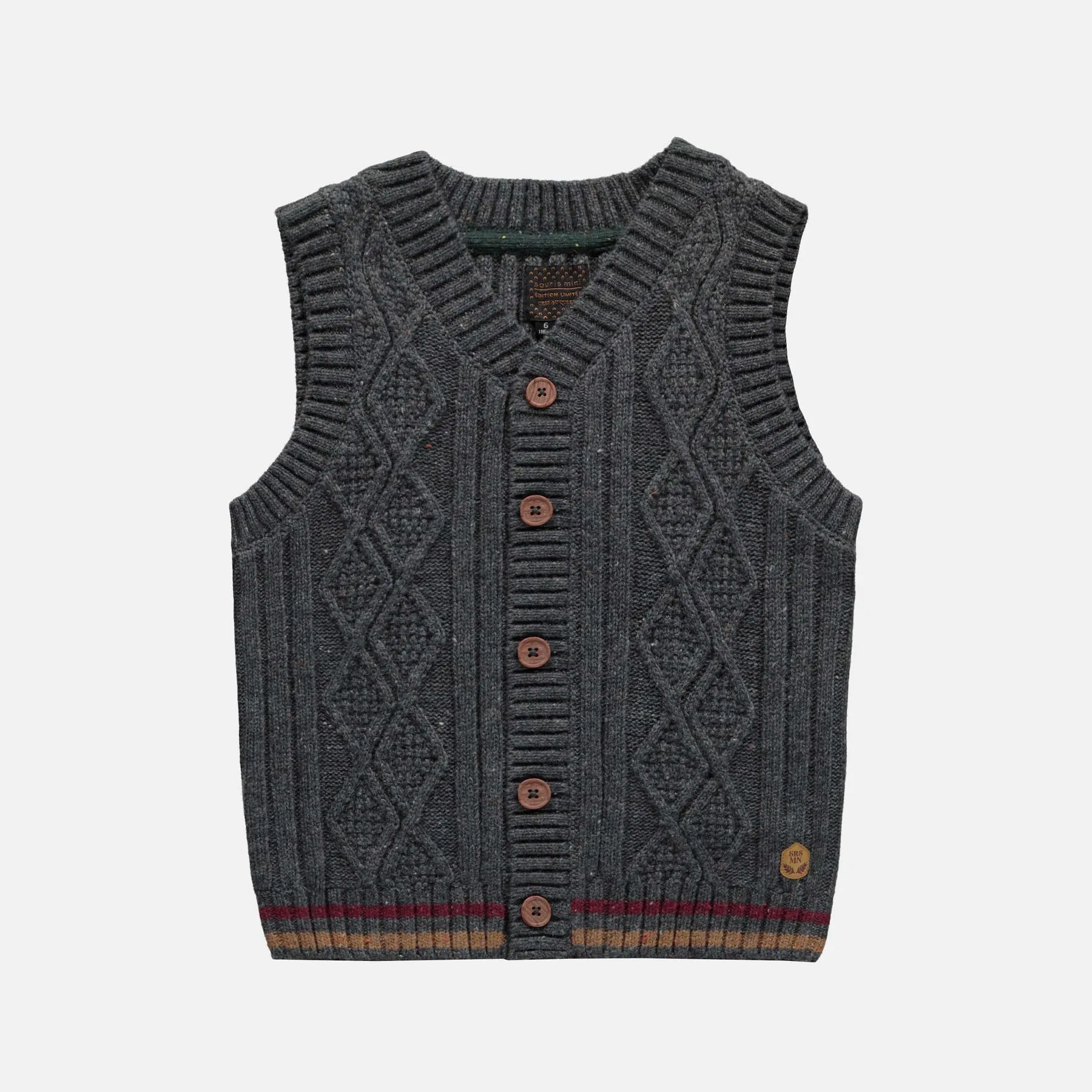 Beautiful dark grey vest in twisted knit. A must-have piece that instantly adds a chic style to your mini. Combining classic and trendy, this tank top can be worn throughout the season.