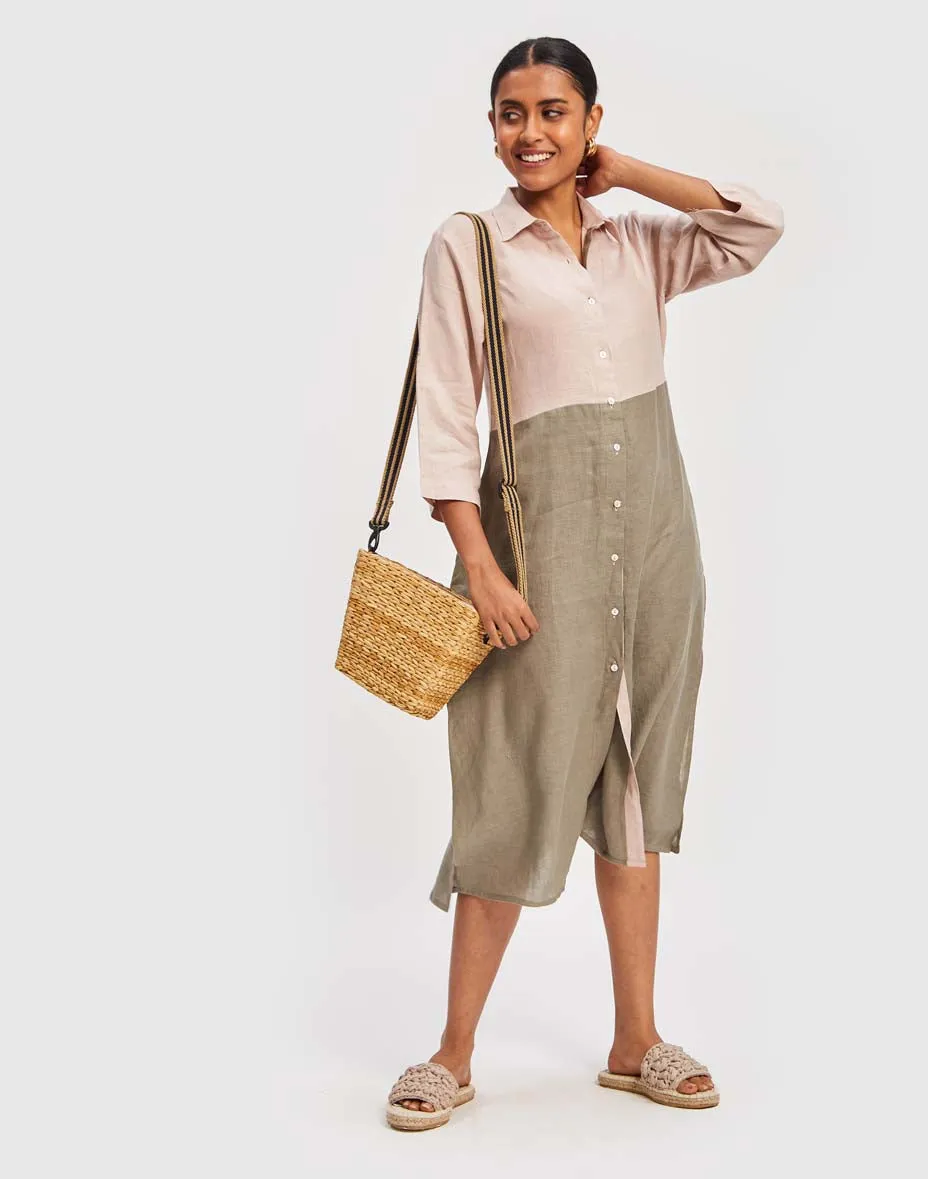 If you want something that is comfortable yet chic, this is your best bet! A color blocked hemp shirt dress that will elevate your everyday.
