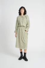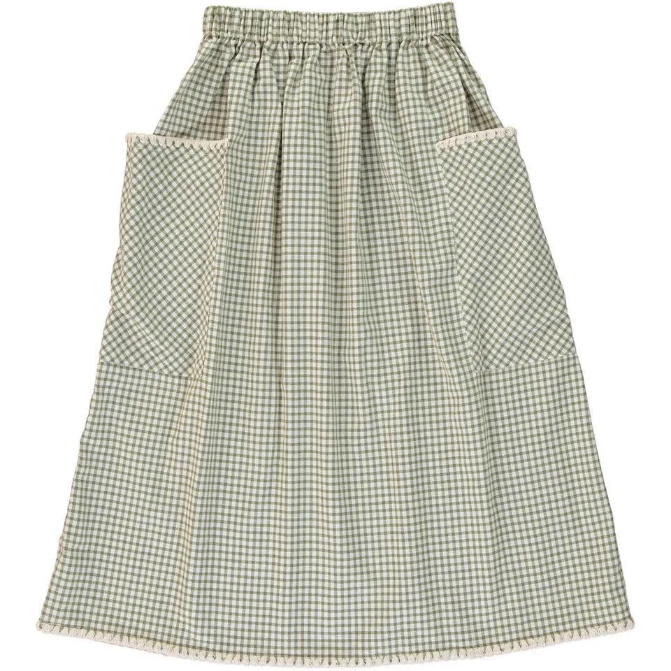 Newest addition in our collection midi lenght Elsa skirt. Crafted from softest organic cotton in brushed flannel feel in natural and green gingham. Features comfortable A-line silhouette, elasticated waist and beautiful crochet detailing on the edges of oversized pockets and hemline. Perfect match with Elsa woman blouse.