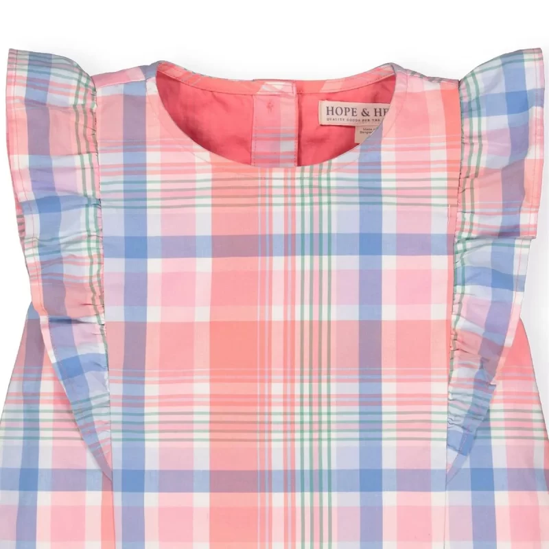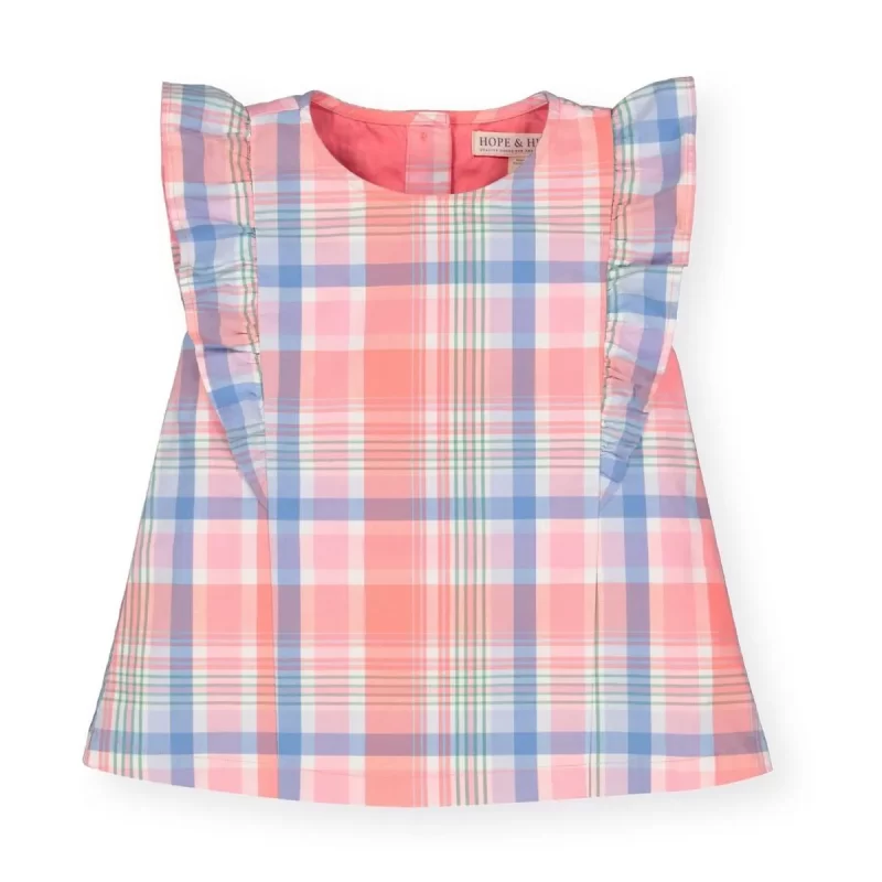 Kids’ flannel blouse in pink check print, made from 100 % GOTS certified organic cotton.