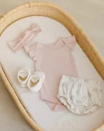 Add fun flair to your little girls style with Quincey Mae’s Flutter Sleeve Bodysuit.