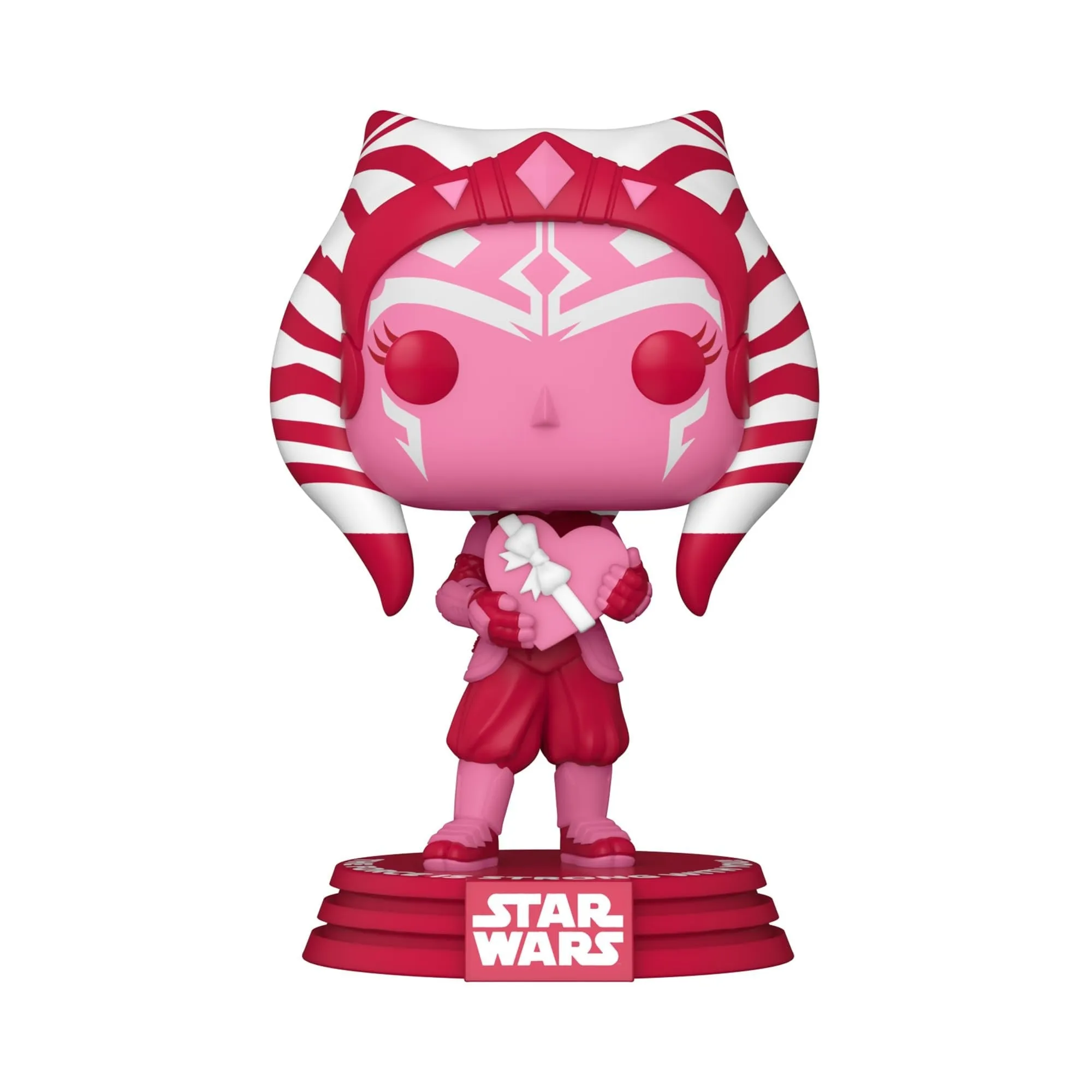 Funko Pop! Star Wars: Valentines – AhsokaChoose your Valentine with the Star Wars Valentine’s Day Pop! Ahsoka.Her red, pink, and white color scheme makes for a vibrant addition to any Star Wars collection, and there’s a sweet message written at her feet.Vinyl bobblehead is approximately 4.5-inches tall.