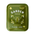 Our stylish Gardener’s Playing Cards include garden-themed illustrations, tips and trivia. Crafted from waterproof material so you can play indoors and out. Featuring beautiful garden-themed illustrations, helpful tips, and entertaining trivia, these cards are a must-have for any avid gardener. Plus, their waterproof material means you can take them anywhere, from the comfort of your own home to the great outdoors. Packaged in a convenient tin, these cards are both practical and charming. Don’t miss out on adding this unique and durable set to your collection!