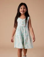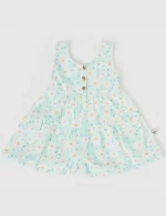 Brighten up your child’s wardrobe with this adorable daisy-patterned dress, perfect for sunny days and playful adventures. Designed with a relaxed, roomy fit for all-day comfort, this dress combines pastel mint and orange hues for a cheerful, spring-inspired look.