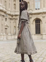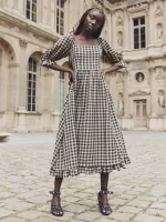 Grace Midi Dress – Black & Tan Check