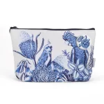 Crafted from durable cotton, this self-standing pouch boasts stunning inky blue illustrations of our native Australian Black Cockatoos. Complete with a removable badge, it offers versatility and style for your travels. Perfect for keeping your essentials organized whether you’re jet-setting or packing for a weekend away.