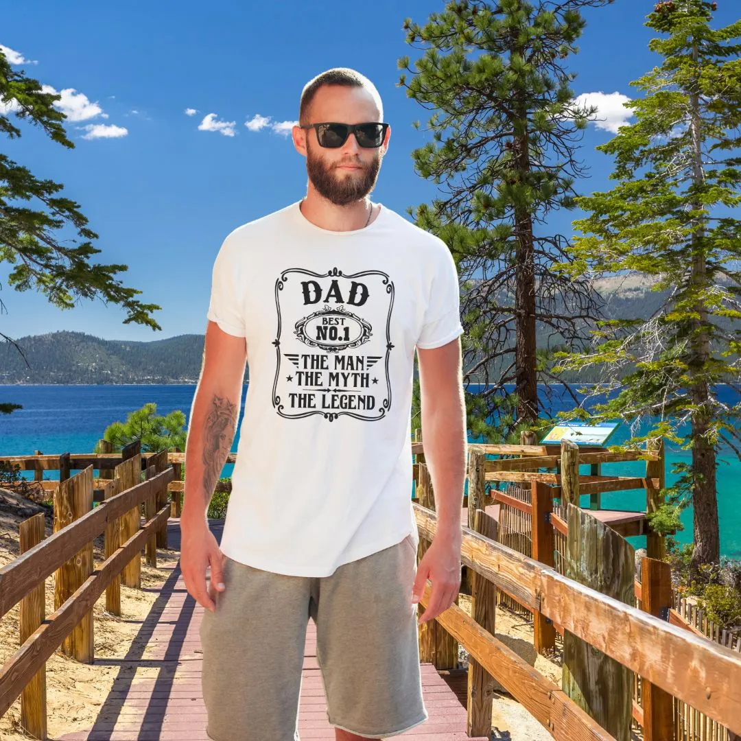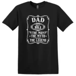 Celebrate the legend in your life with our No. 1 Dad T-Shirt! Featuring a classic whiskey label design, this tee proudly declares “The Man, The Myth, The Legend.” Made from softstyle cotton, this unisex shirt ensures comfort and durability, perfect for any dad who loves a good laugh and a comfortable fit. Available in sizes Small to 4XL and in three versatile colors: white, black, and sport grey. This t-shirt makes an ideal gift for Father’s Day, birthdays, or any occasion to honor the incredible dads out there.