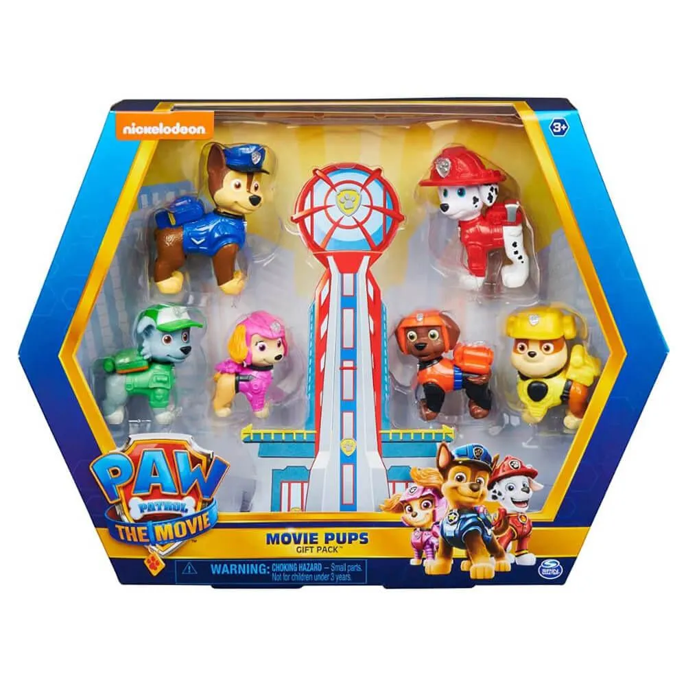 Create your own PAW Patrol: The Movie adventures with the Movie Pups Gift Pack. This PAW Patrol figures set includes Chase, Marshall, Rocky, Rubble, Zuma and Skye. The Movie Pups Gift Pack is the perfect way to bring all of your favourite pups