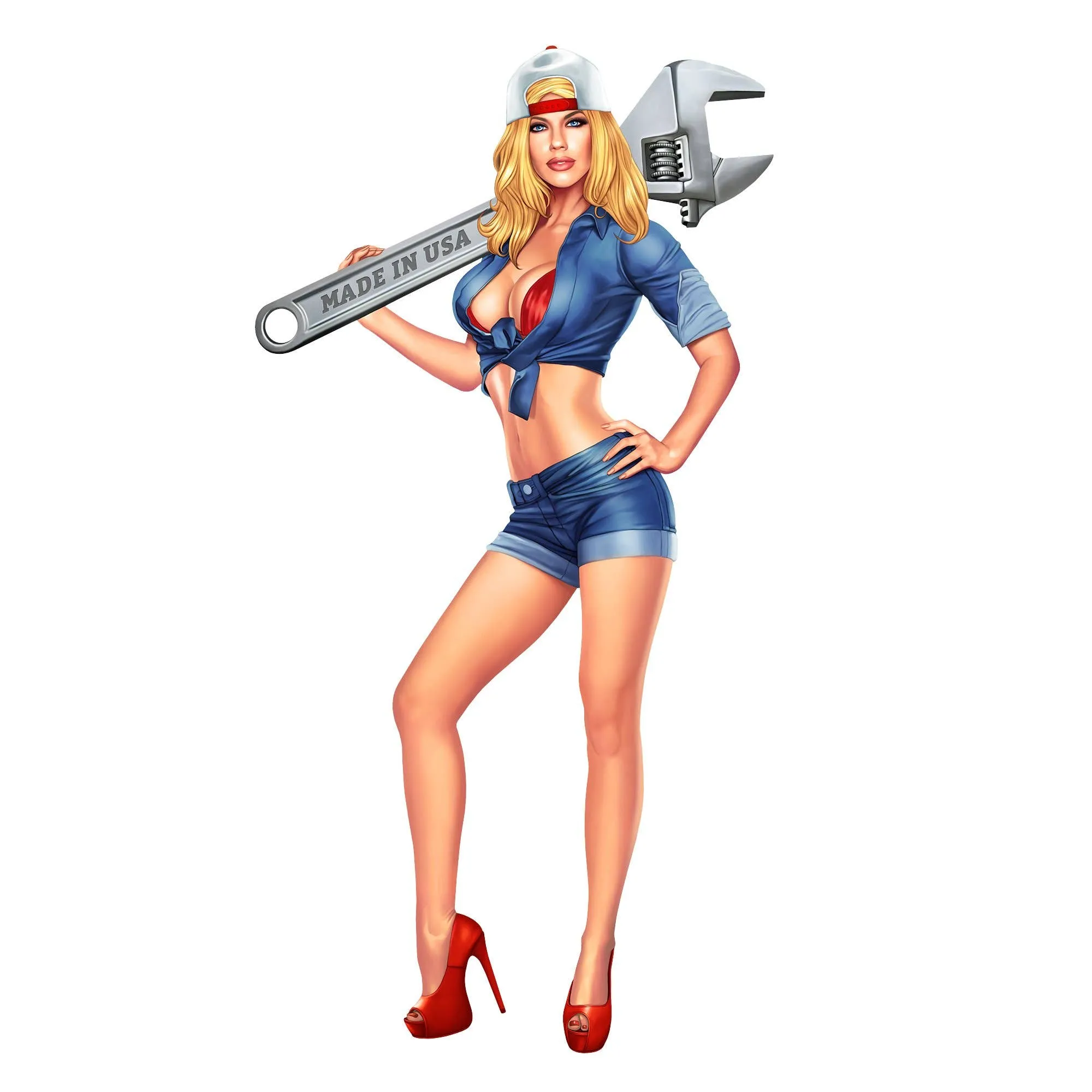 Pinup Wrench Girl "Lana" Garage Shop Metal Art Sign