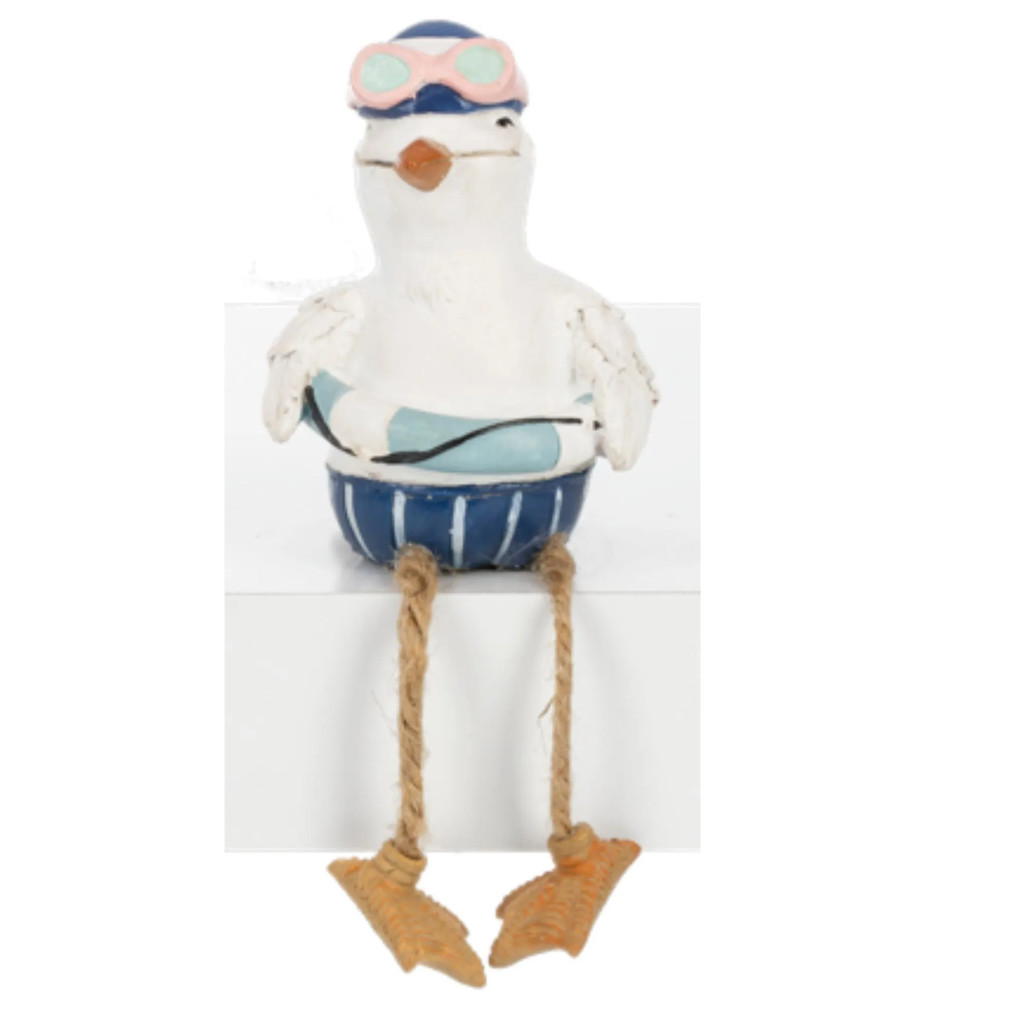 Adorable seagull shelfsitters for summer time, beach, lake or river decor. Choose from either seagull in bikini or seagull in swimtrunks and floatie. Can’t decide? Get 1 of each.