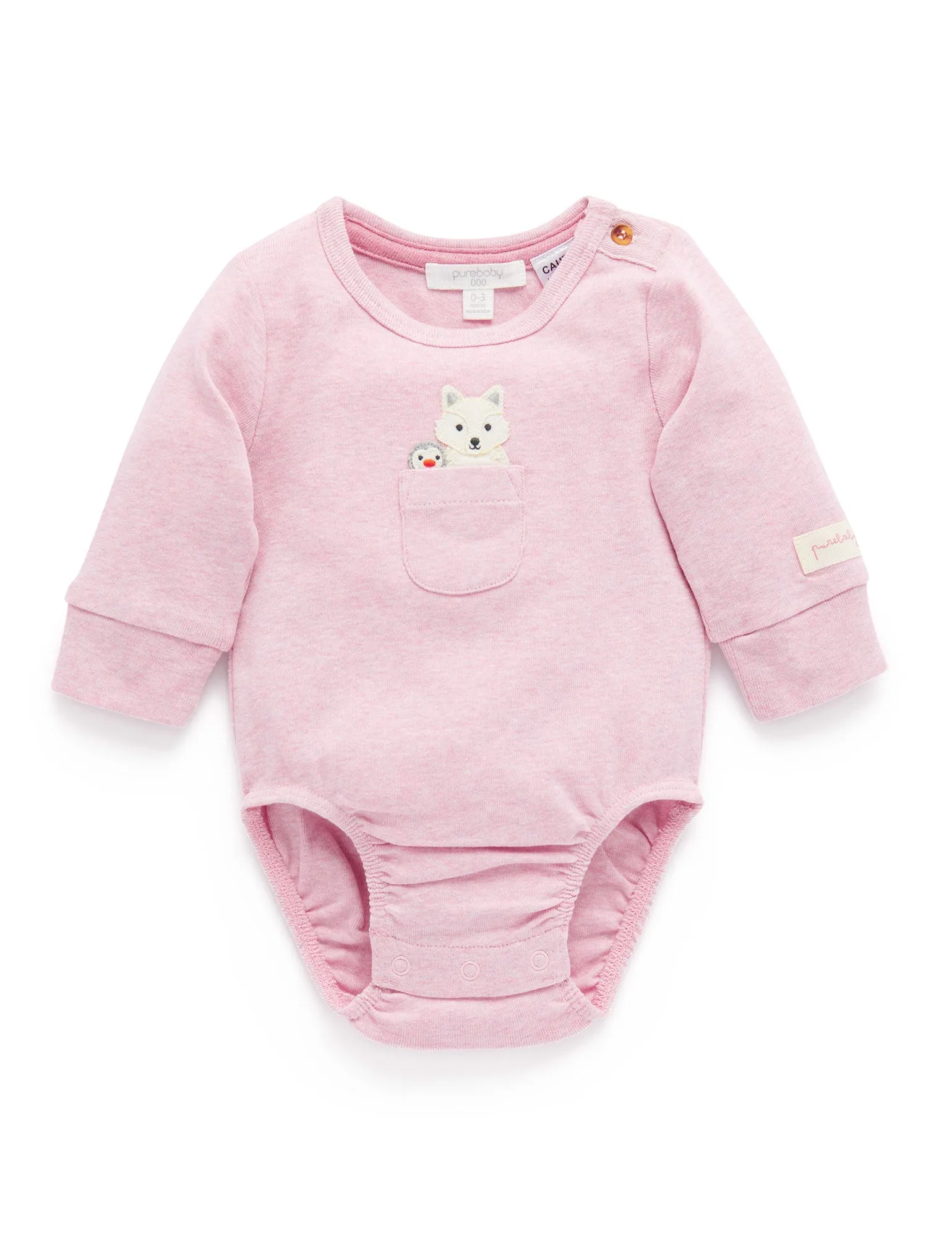 The Peekaboo Bodysuit from Purebaby is the sweetest layering piece for all seasons. Bodysuits are essential in your baby’s wardrobe and an ideal layering piece all year round. Featuring a fun arctic animal peekaboo applique at the chest! Made from GOTS certified 100% Organic Cotton for a soft, gentle touch against their skin.