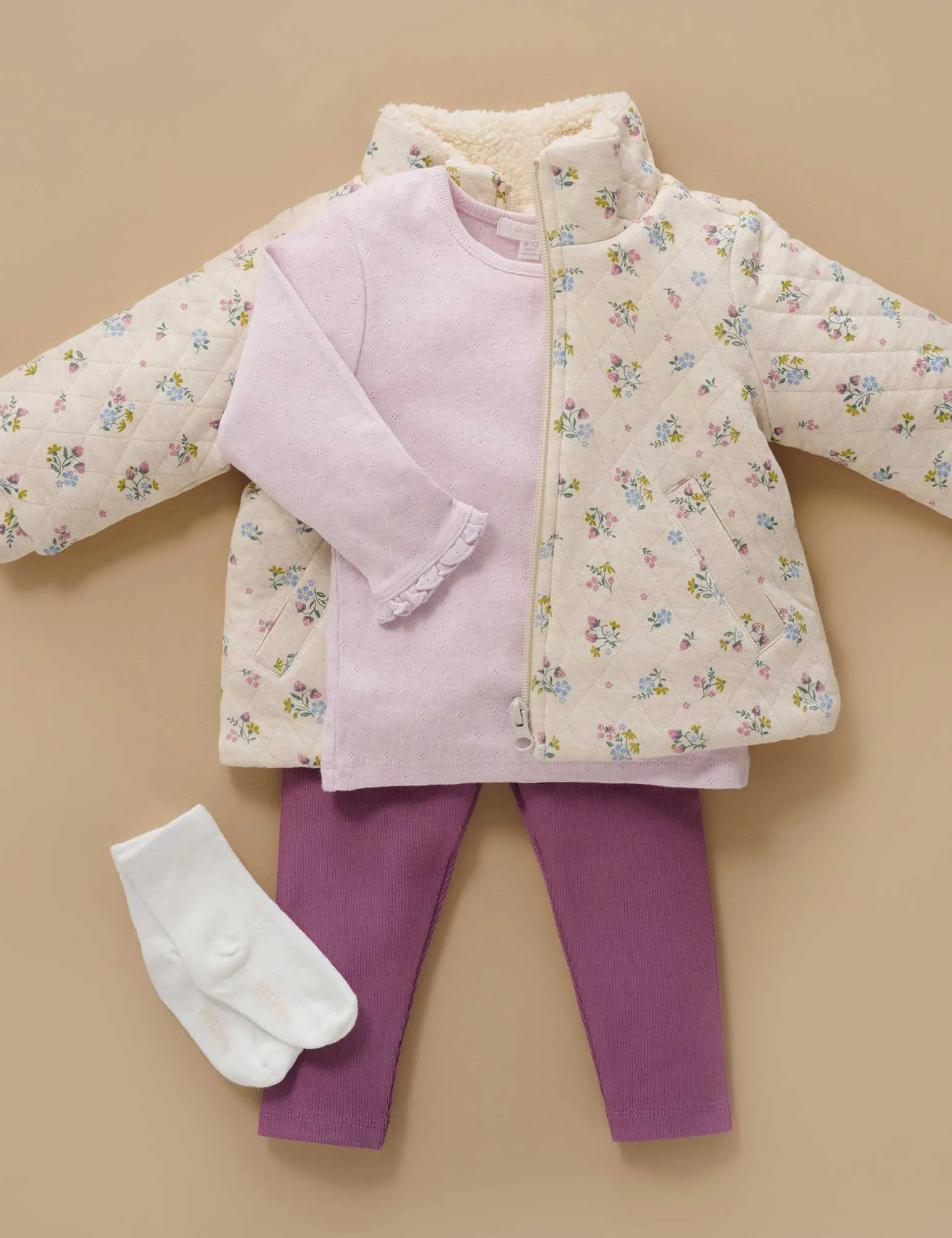 The Quilted Jacket from Purebaby is a cosy layering piece, made in their popular quilted, wadded fabric. Featuring a funnel neck collar, this jacket is fully lined in soft, faux shearling. Layer over tees, and pair with track pants or leggings for a cute, casual look.