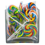 Swirled in a bright rainbow of colors, these 2″ suckers are the perfect candy to have around during birthday parties, carnivals, fundraisers or wherever you need to brighten up your treat table! Sweet, tasty fun for both kids and adults, each 2″ innavidually wrapped lollipop comes in assorted cherry, orange, grape and banana flavors on a 3 1/2″ plastic stick. Total wt., 7 oz. Fat-free. Children of all ages will love these Swirl Pops Suckers. With a variety of fun fruit flavors, everyone will be begging for one of these fun treats. 1 Dozen. Measures: 2 Inch sucker on 3 1/2 plastic stick. Fat Free Innavidually Wrapped. Assorted Colors. Assorted Fruit Flavors.Swirled in a bright rainbow of colors, these 2″ suckers are the perfect candy to have around during birthday parties, carnivals, fundraisers or wherever you need to brighten up your treat table!Sweet, tasty fun for both kids and adults, each 2″ innavidually wrapped lollipop comes in assorted cherry, orange, grape and banana flavors on a 3 1/2″ plastic stick.
