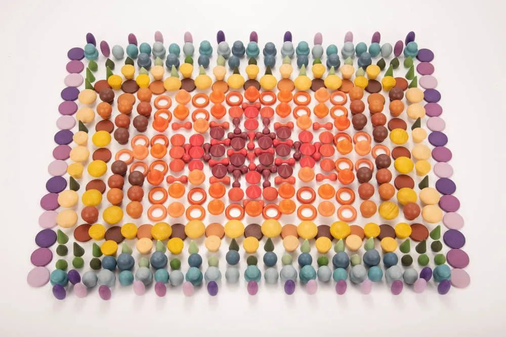 A combination set containing our Wooden Treasures Super Set and Wooden Sorting Tray (14-Way). 420 beautiful smooth wooden shapes inspired