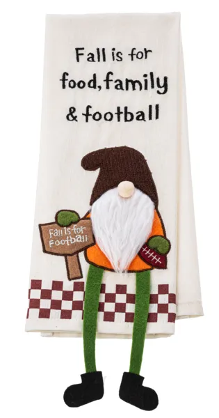 Show your team spirit and add a little fall fun to your kitchen with this vibrant football-themed Gnome Tea Towel. These beautiful towels measure 15 1/2” w x 27” h and come in a variety of designs, so you can choose your favorite! Who’s ready to cheer on their favorite team?