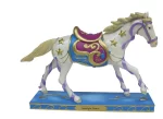 Starlight Dance from the Trail of Painted Ponies collection by Enesco depicts that while the earth appears dark and quiet below, “Starlight Dance” illuminates the sky above. As she runs through the night she leaves a gleaming trail of light behind her, and stardust falls from her golden hooves.